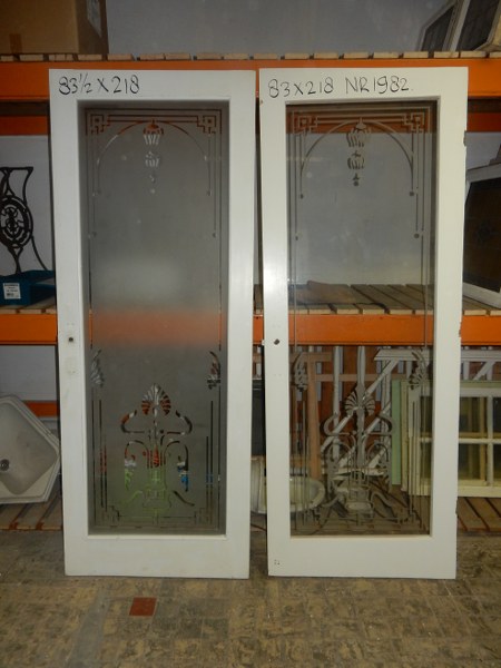 twee mooie deuren met gezandstraald glas maten 83.5 x 218