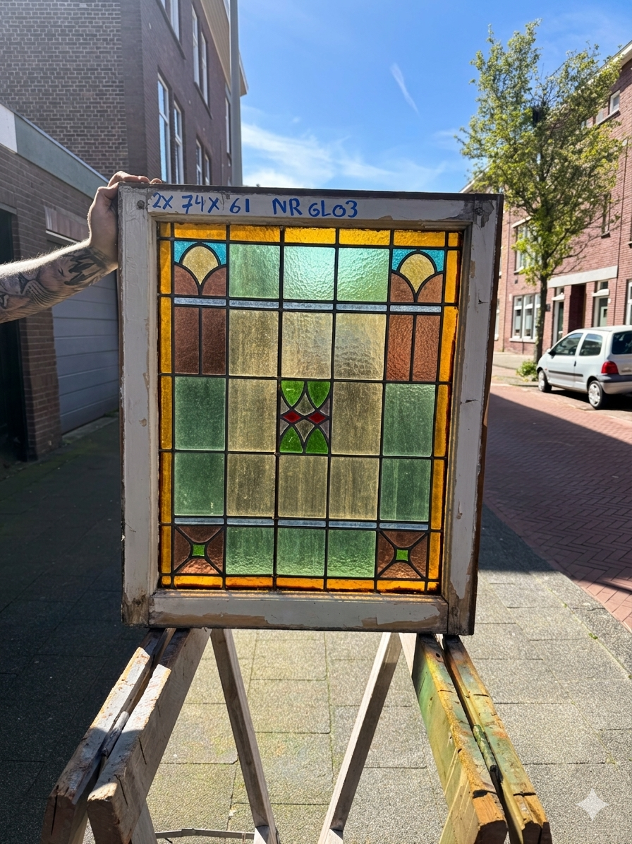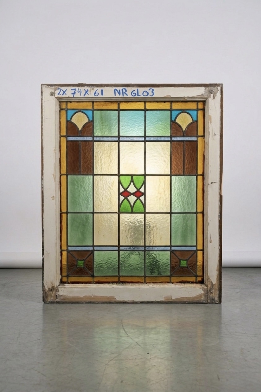 Antiek Glas-in-Lood Raam – Jugendstil | 74 × 61 cm | Nr. GL03 | 2 stuks op voorraad.