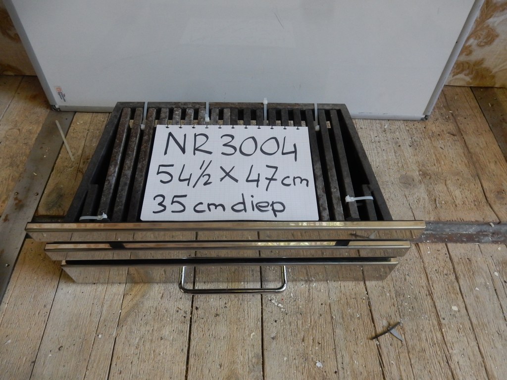 Oude aslade , in de maat 54,5 cm x 47 cm , 35 cm diep.