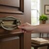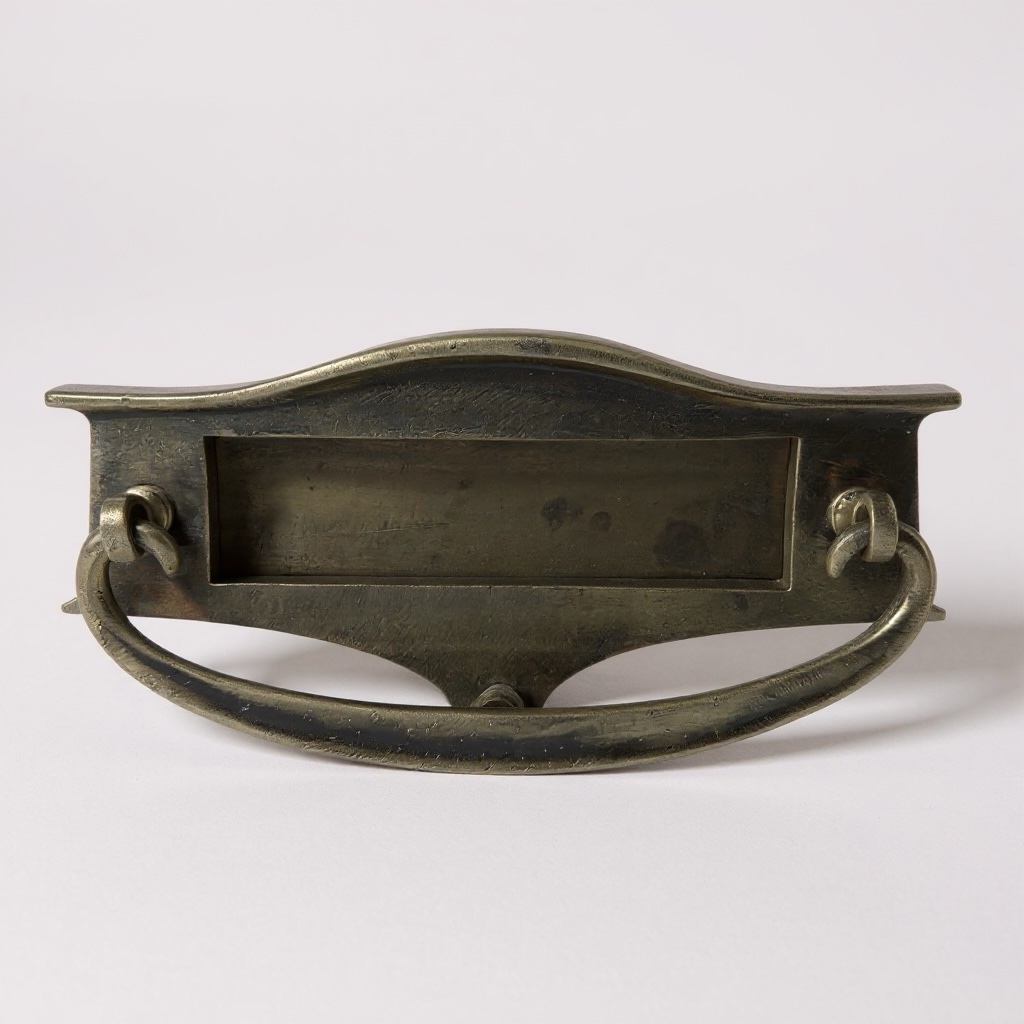 Messing brievenbus met handvat die tevens als klopper gebruikt kan worden.