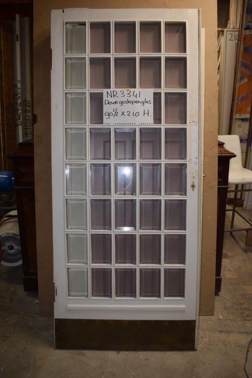 Mooie deur met geslepen glas , voorzien van een messing stootrand.