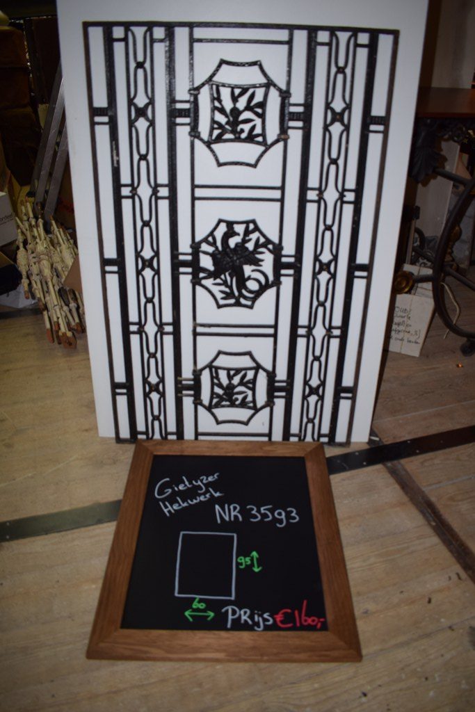 Mooi gietijzer hekwerk in zeer goede kwaliteit. Te gebruiken als bijvoorbeeld deurrooster/Raam rooster