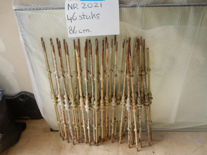 Mooie partij gietijzeren trapspijlen, 46 stuks op voorraad.
