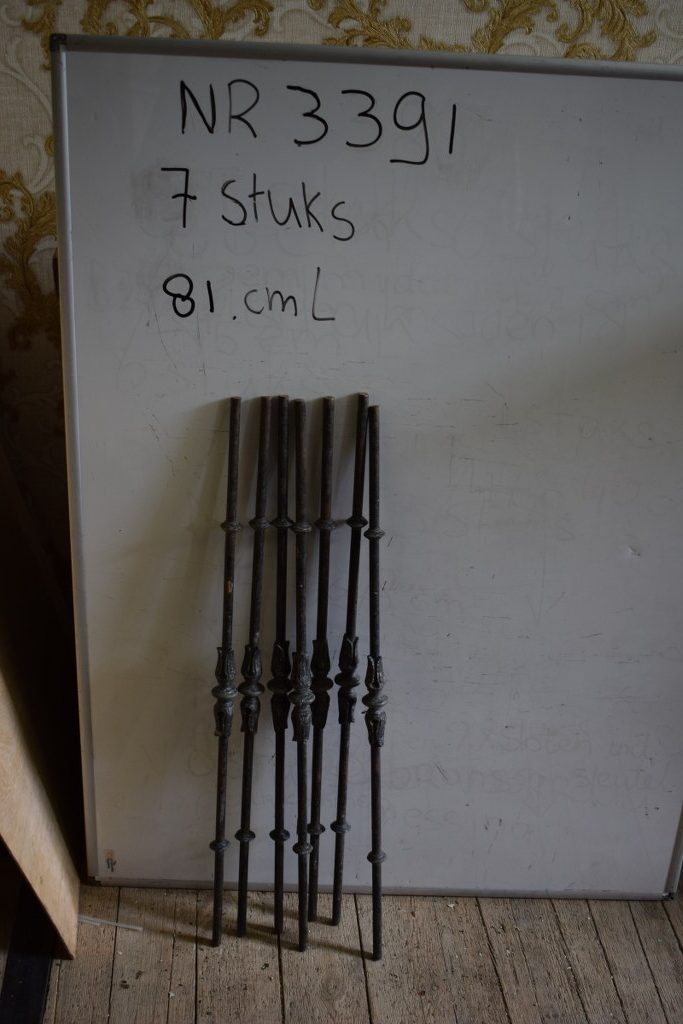 Mooie gietijzeren trapspijlen voorzien van een prachtig uitgewerkte bloem in het midden.