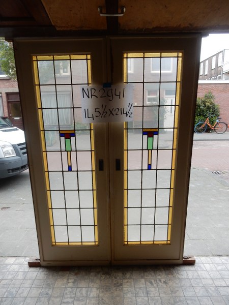 Dit mooie setje glas in lood schuifdeuren heeft een totale breedte van 145.5 x 214.5 cm hoog