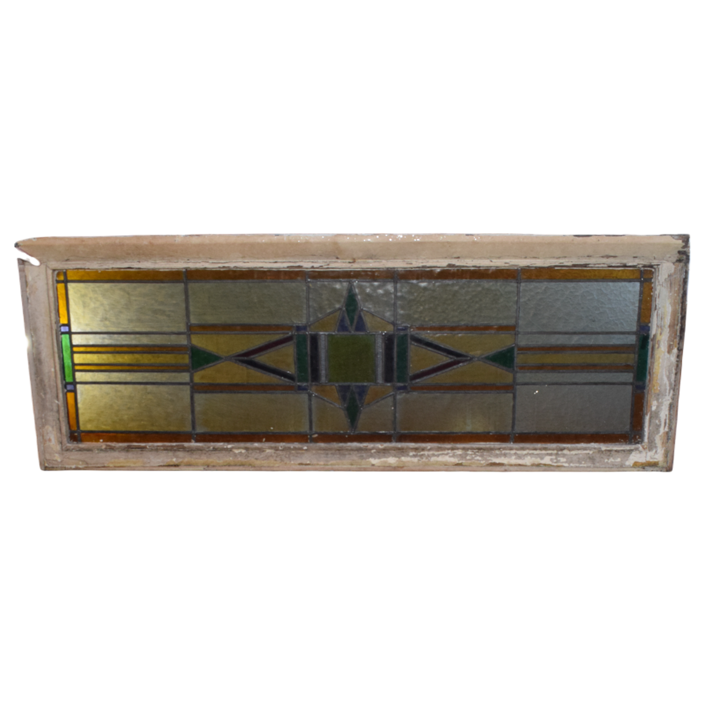 Voeg een historisch accent toe aan uw huis met dit klassieke glas-in-lood bovenlicht raam, Nr. 4833. Het zorgvuldig samengestelde patroon van geometrische vormen en aardetinten zorgt voor een warme en uitnodigende sfeer. Dit stuk is ideaal voor het toevoegen van privacy en stijl boven de deuropeningen in uw huis, terwijl het nog steeds natuurlijk licht doorlaat. Het is een tijdloze keuze die bijdraagt aan de authentieke charme van elk erfgoedhuis of aan de warme sfeer van een traditioneel ingerichte ruimte.Zitat
