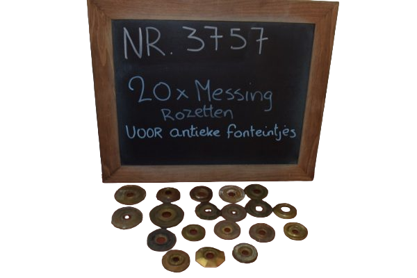 Prachtige oude messing rozetten , voor het afwerken van messing kraantjes op fonteintjes. 20 stuks op voorraad