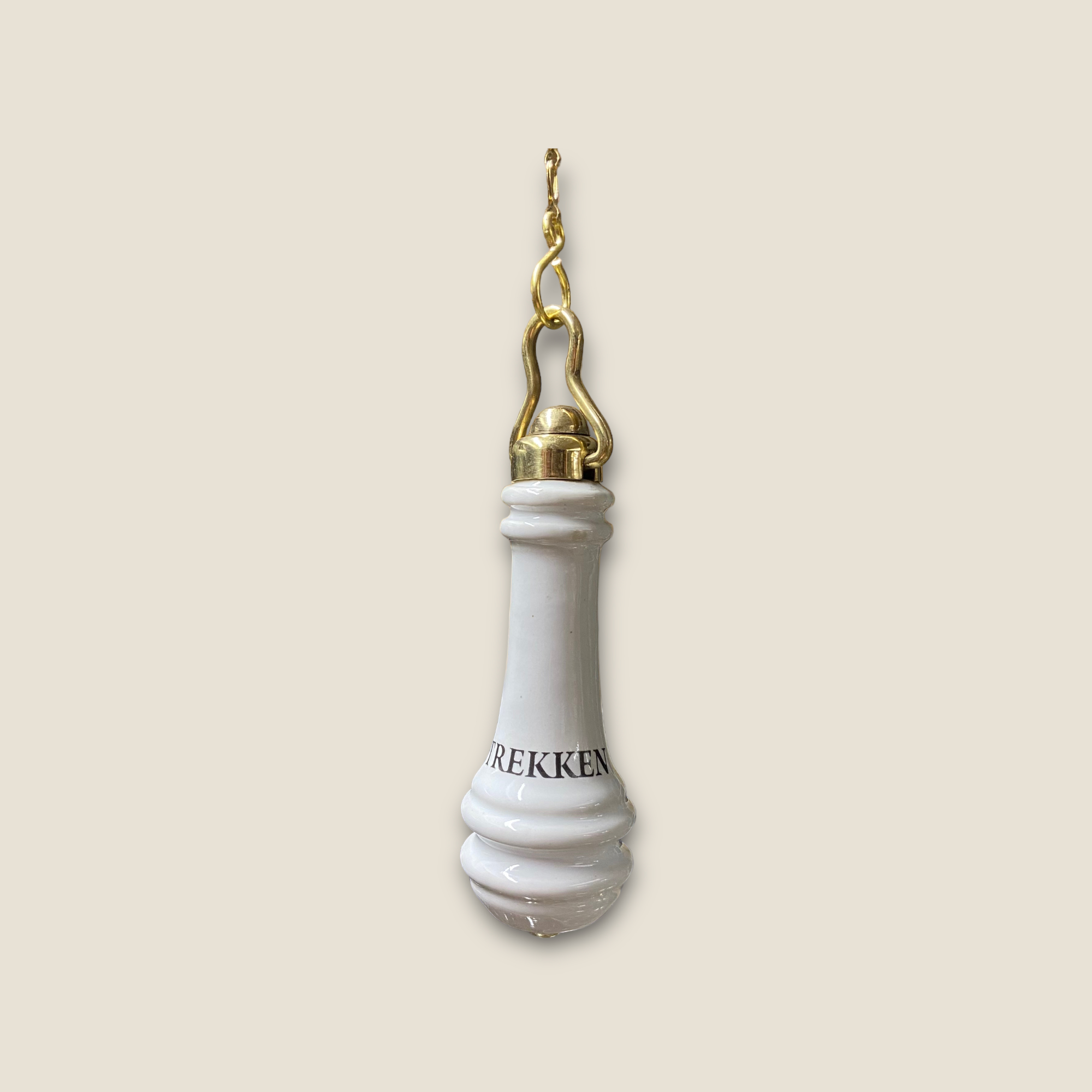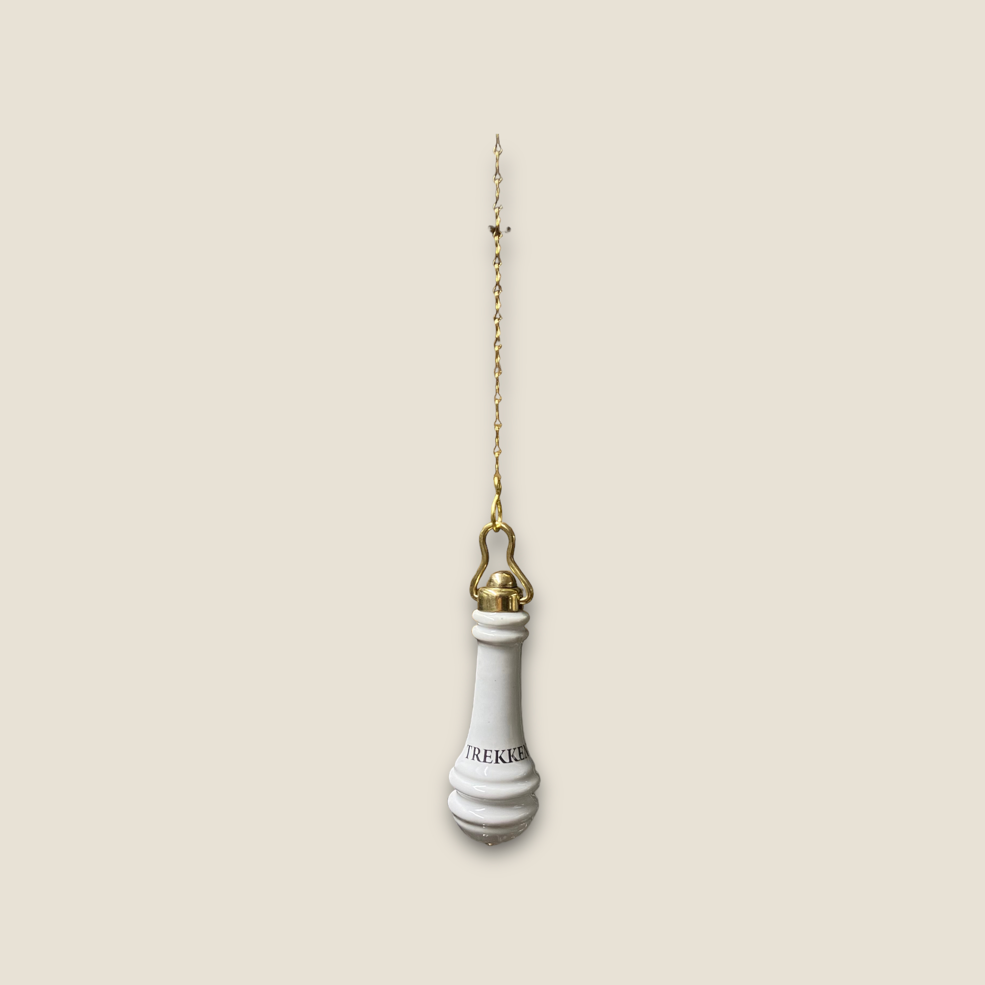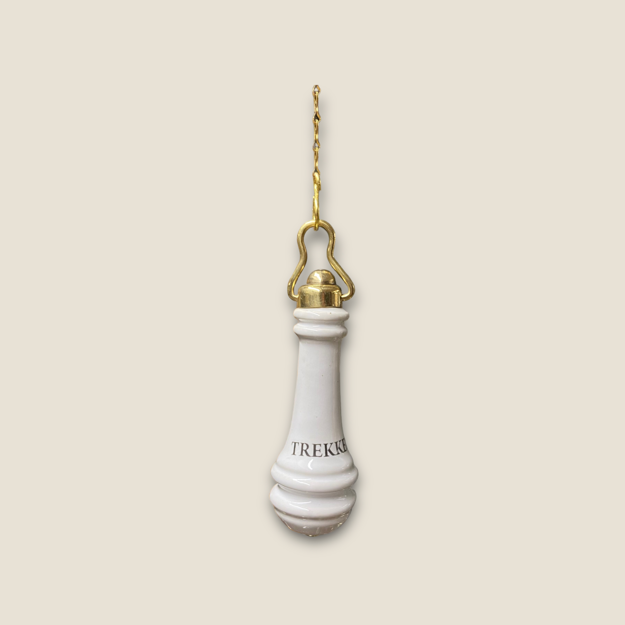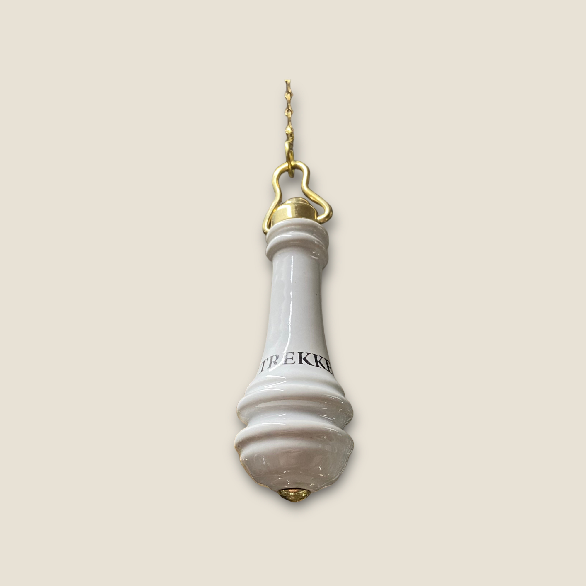 Gereproduceerde toilet trekker gemaakt van porselein met tekst ” TREKKEN ”