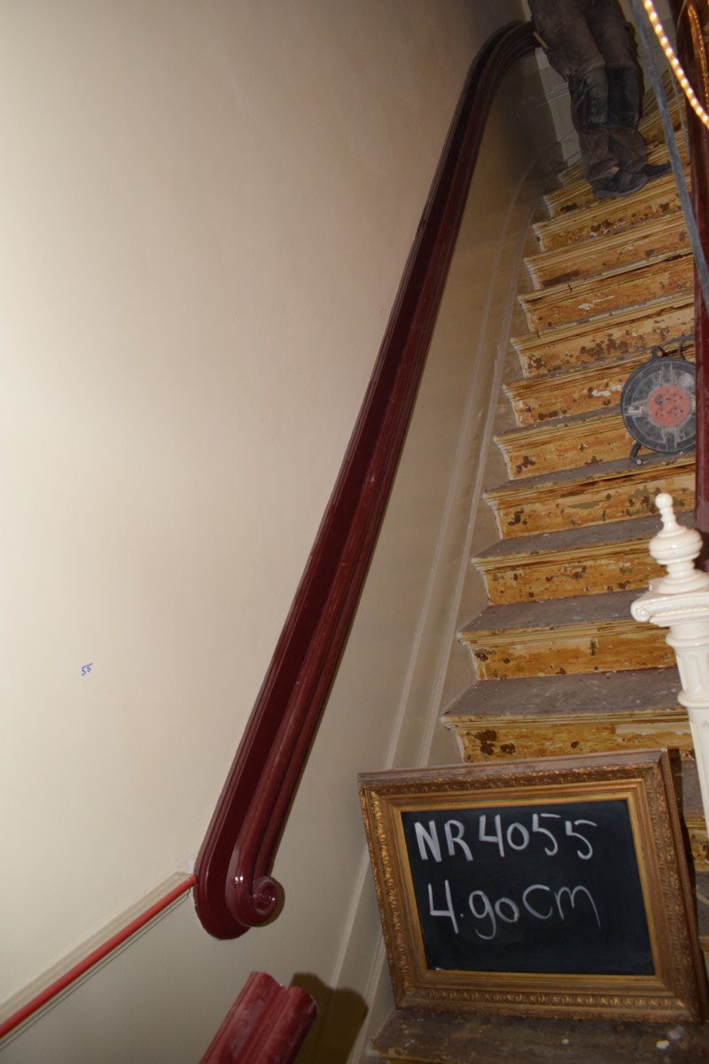 De trapleuningen zijn zorgvuldig gedemonteerd.