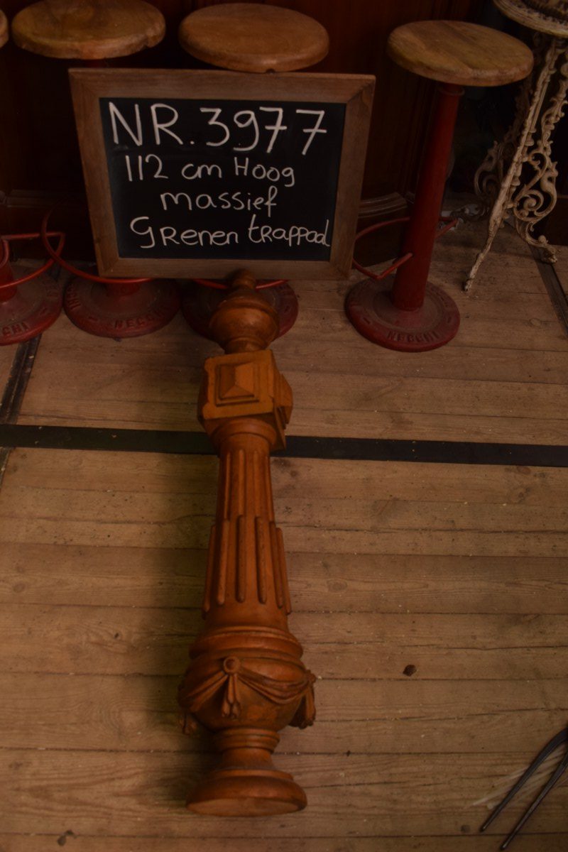 Deze prachtige trappaal is van massief grenenhout, mooi uitgewerkt en is 112cm hoog.