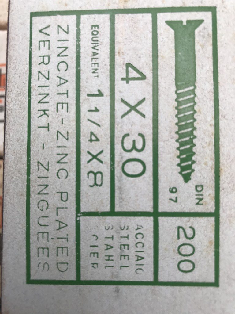Grote voorraad oude schroeven verzinkt. 4×30