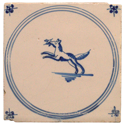 De tegel “Vos vangt vogel” toont een sierlijke afbeelding van een vos die net een vogel heeft gevangen, een moment van actie bevroren in tijd. Het gebruik van de kenmerkende blauwe kleur weerspiegelt de invloed van de traditionele Delftse tegels, die al eeuwenlang geliefd zijn. Deze scène benadrukt zowel de schoonheid van de natuur als de dynamiek van het dierlijke instinct. Met zijn elegante lijnen en subtiele details vangt deze tegel een levendige beweging in een tijdloze stijl. Een prachtig voorbeeld van vakmanschap en artistieke expressie, perfect voor iedere verzamelaar of liefhebber van klassieke keramiek.