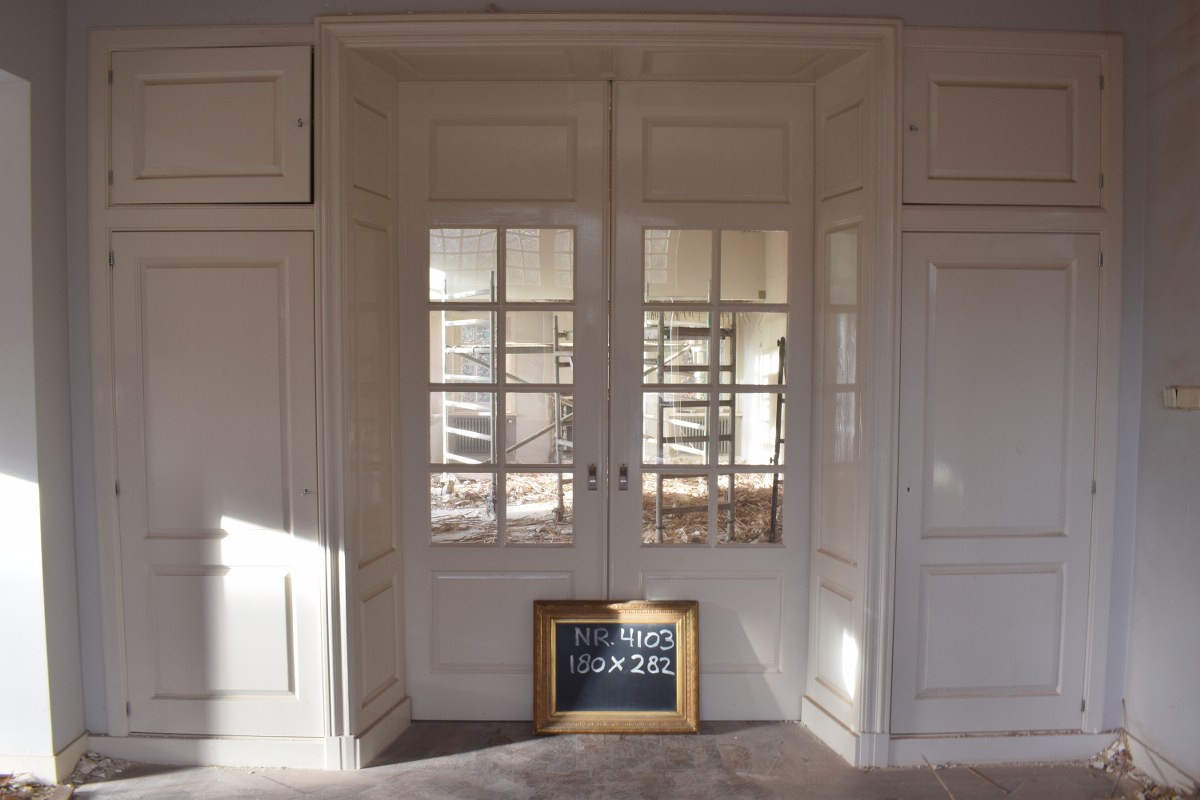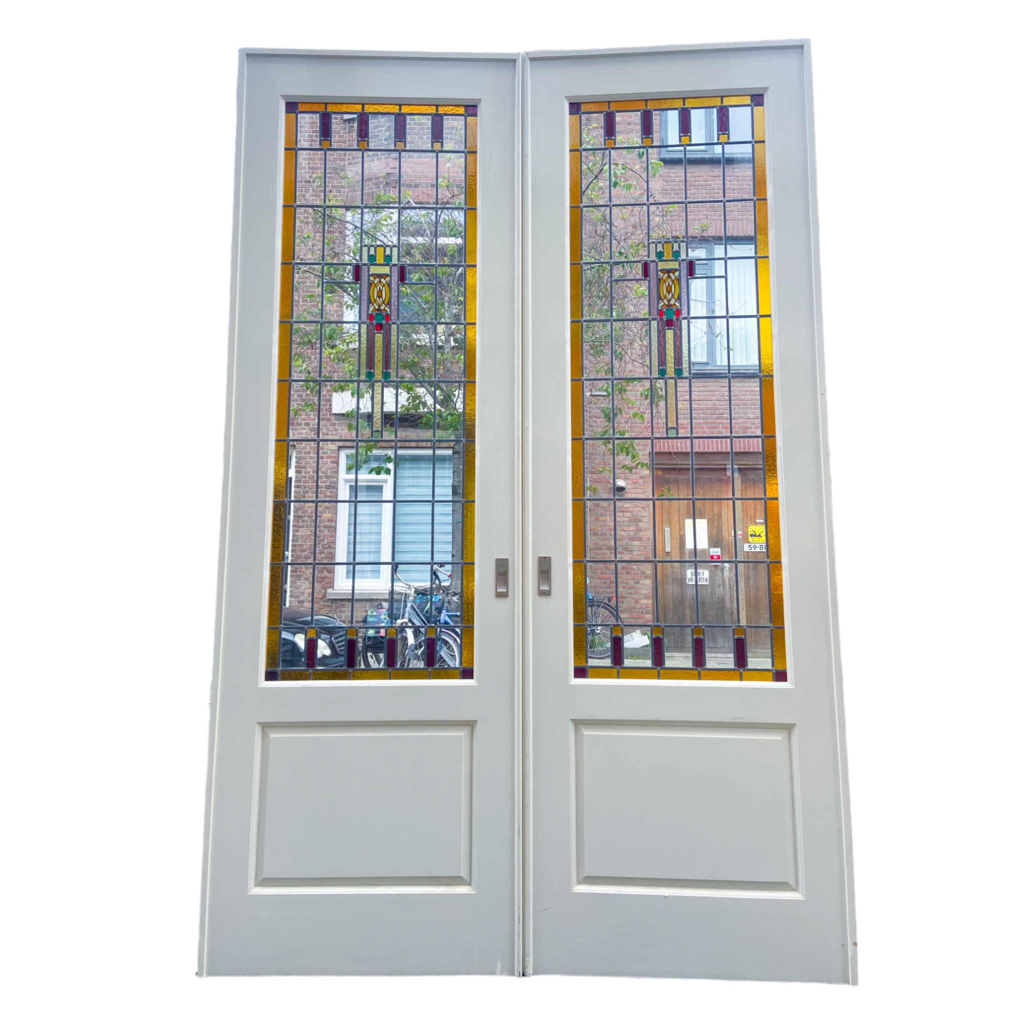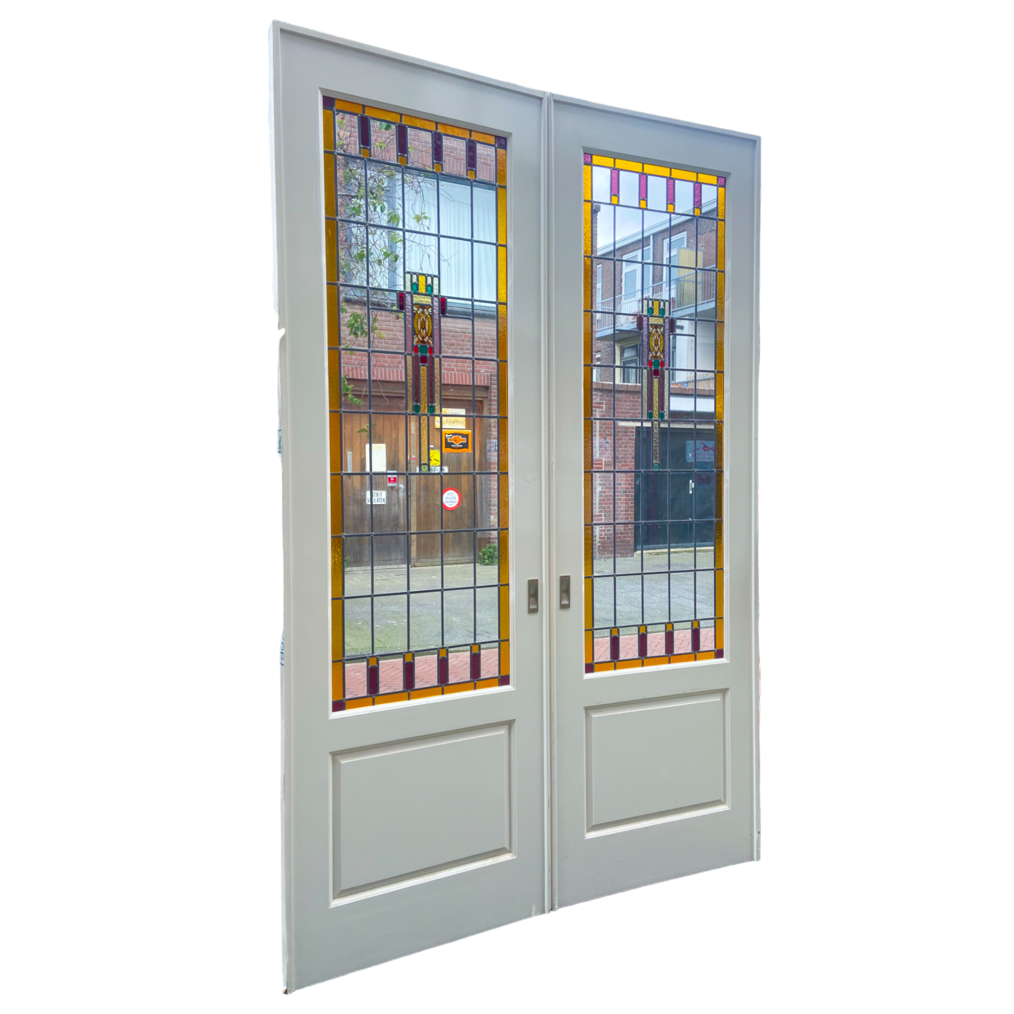 – 2 schuifdeuren met nieuw gezet glas in lood